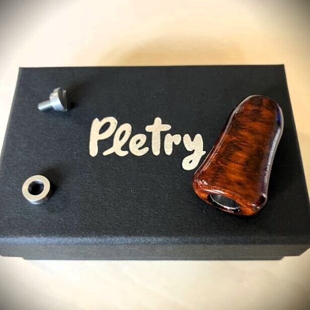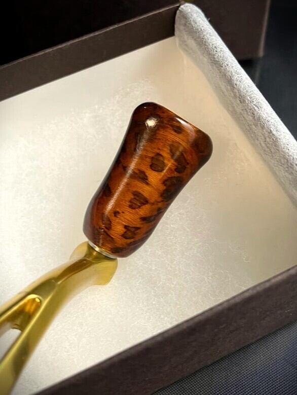 グリップ部はスネークウッド天然木、内部のスリーブとスキャップスクリューはアルミの削り出し後に表面アルマイト処理を施しております。。
