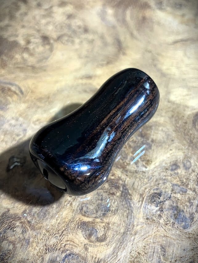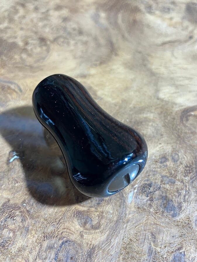 グリップ部は天然木、内部のパーツは全てアルミの削り出し後に表面アルマイト処理(ガンメタ色)。木材の唯一無二の杢目、指先で包み込めるような程よい湾曲形状のフィット感と握り心地、木ノブの中ではTOPクラスのセンター部の薄さ、また合わせ時に指先がノブから外れる現象を緩和する為、坂道の様な立ち上がり設計で横方向へ抜けにくい、自然木独特の癒され感とお洒落なGourd knobです。