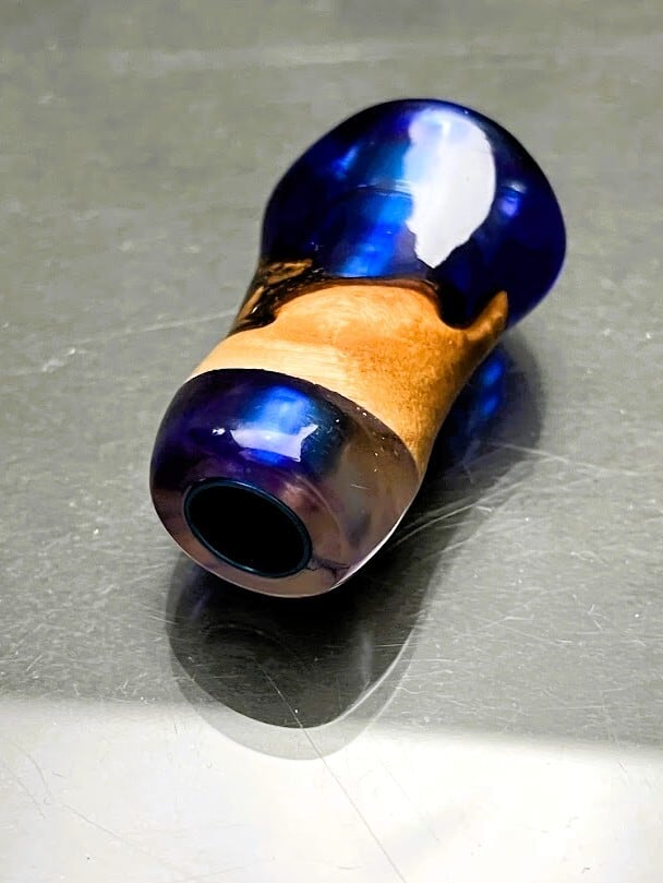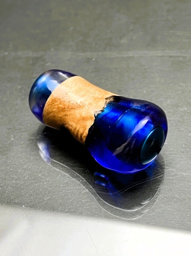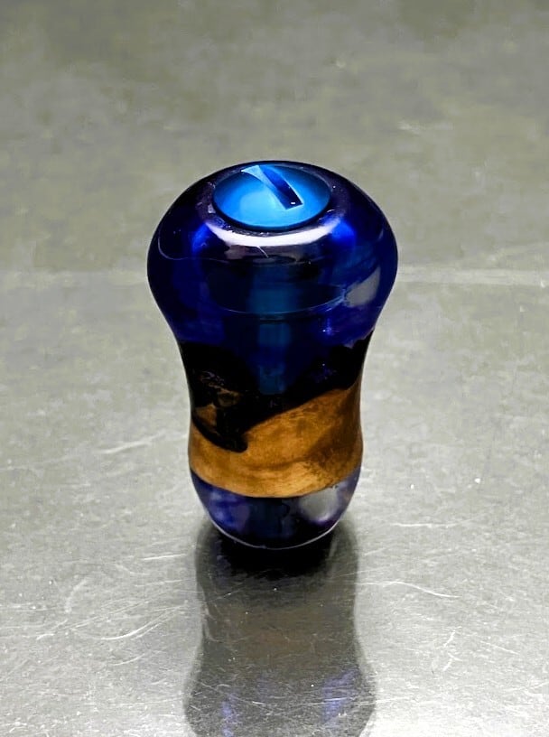 グリップ部は天然木とレジンのハイブリッド、内部のスリーブとスクリューキャップはアルミの削り出し後に表面アルマイト処理(グリーン色)。木材の唯一無二の杢目、指先で包み込めるような程よい湾曲形状のフィット感と握り心地、木ノブの中ではTOPクラスのセンター部の薄さ、また合わせ時に指先がノブから外れる現象を緩和する為、坂道の様な立ち上がり設計で横方向へ抜けにくい、自然木独特の癒され感とお洒落なGourd knobです。